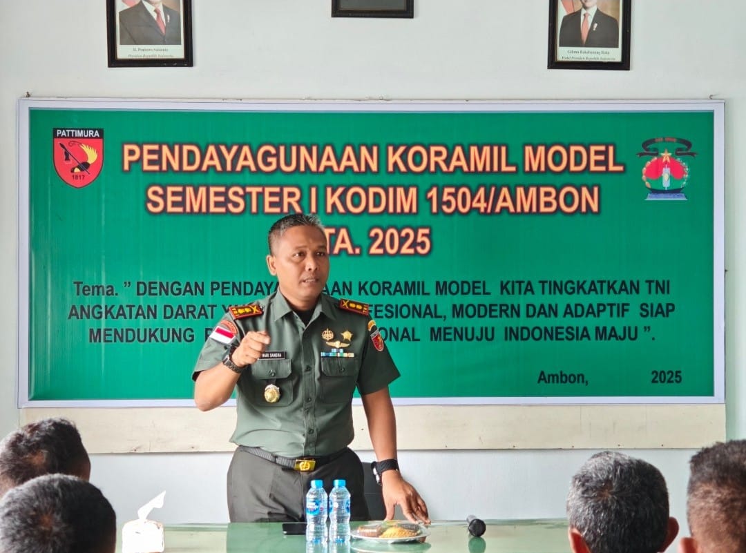 Ambon,Kabarsulsel-lndonesia.com. Menjawab tantangan tugas teritorial di era yang makin kompleks dan digital, Kodim 1504/Ambon menggelar kegiatan Pendayagunaan Koramil Model Semester I Tahun Anggaran 2025, yang berlangsung selama dua hari, Selasa–Rabu, (8–9 Juli 2025), bertempat di Aula Koramil 1504-06/Nusaniwe, Kel. Benteng, Kec. Nusaniwe, Kota Ambon.