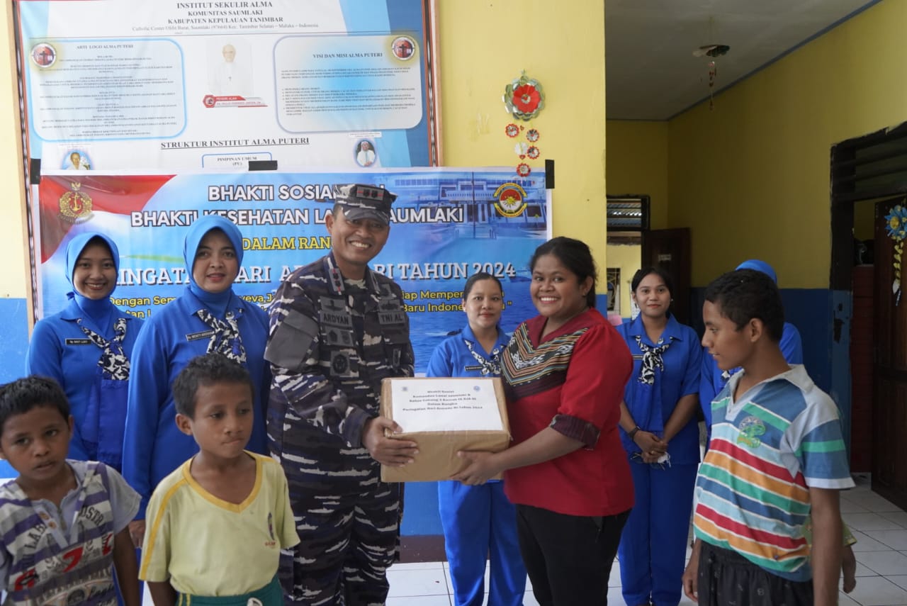Ambon.Kabarsulsel.lndonesia.com.29 November 2024. Komandan Pangkalan TNI AL (Danlanal) Saumlaki Letkol Laut (P) I Made Ardyan Budi H.,S.E., M.Tr.Hanla.,CRMP, beserta Ketua Cabang 3 Korcab lX DJA lll Ny. Wenty Ardyan, melaksanakan Bakti Sosial dan Bakti Kesehatan Lanal Saumlaki dalam rangka Memperingati Hari Armada RI tahun 2024 di Panti Asuhan Bhakti Luhur Saumlaki.