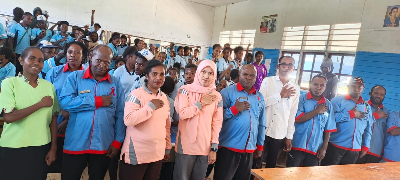 PANIAI-Papua Tengah-Komisi Penanggulangan AIDS (KPA) Kabupaten Paniai terus memperkuat upaya pencegahan dan penanggulangan HIV/AIDS di wilayahnya. Salah satu langkah konkret dilakukan melalui kegiatan sosialisasi dan pemeriksaan HIV/AIDS di SMP Negeri 1 Paniai Timur, yang beralamat di Jl. Margalayu, Toputo,, Enarotali, Paniai Timur, Kabupaten Paniai, Papua Tengah 98726, Jumat (07/11/2025).