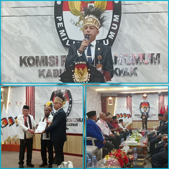 Hal ini disampaikan Hendra dalam sambutannya usai menyerahkan tanda terima pendaftaran kepada pasangan calon tersebut pada tahapan pemilihan Bupati dan Wakil Bupati Fakfak 2024.