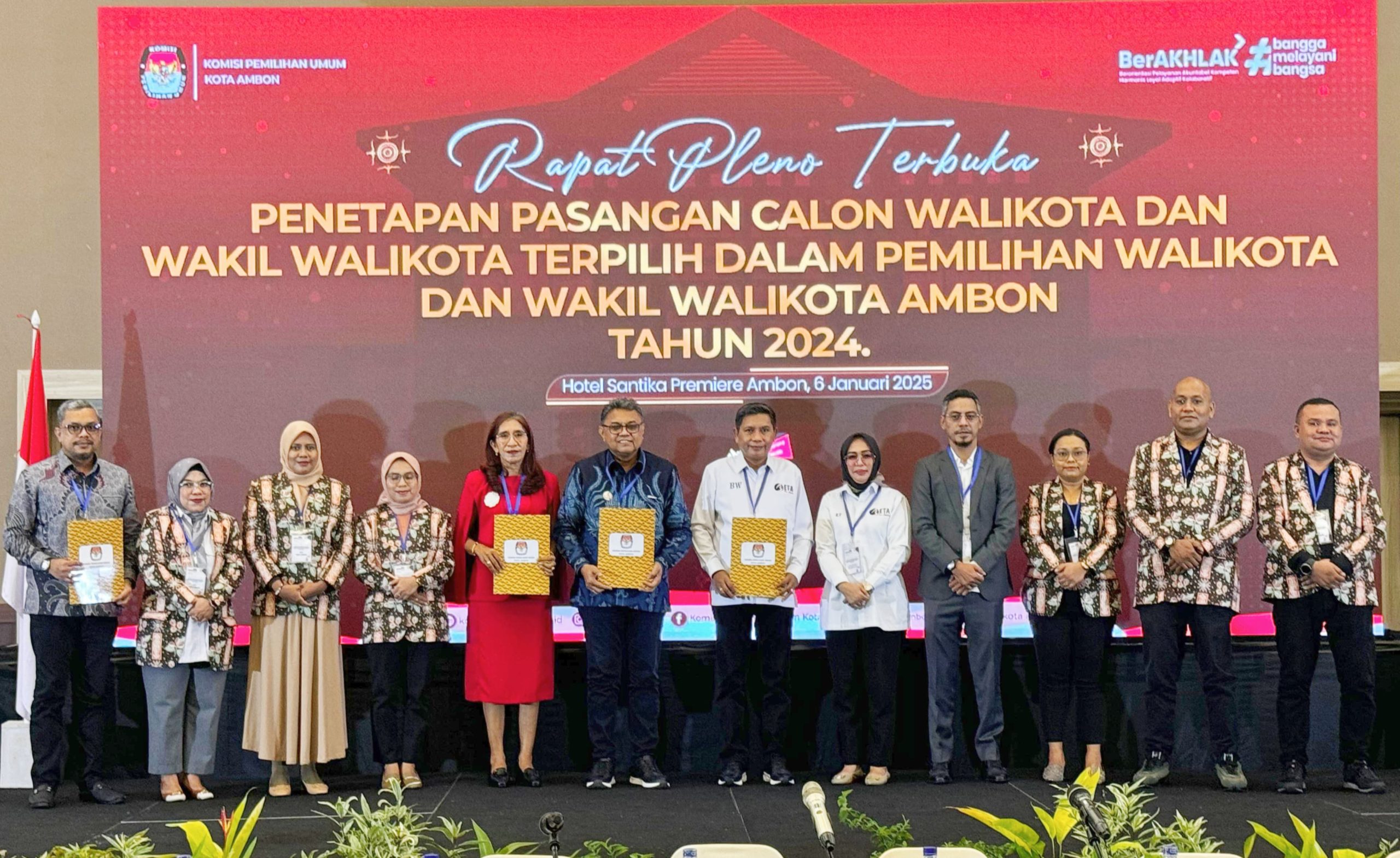 Komisi pemilihan umum ( KPU ) Kota Ambon dalam rapat pleno  menetapkan calon Walikota Bodewin dan Wakil Walikota Ely Toisutta sebagai Walikota dan wakil Walikota terpilih yang bertempat di hotel Santika Premiere, Kamis (06/01/25)