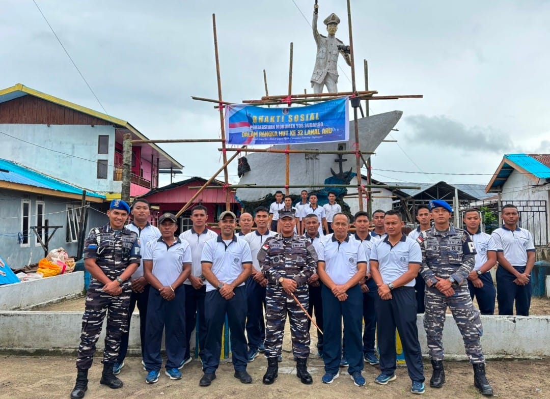 Ambon,Kabarsulsel-lndonesia.com. Pangkalan TNI Angkatan Laut Aru (Lanal Aru) menggelar kegiatan Karya Bakti berupa bersih -bersih monumen Yos Soedarso yang menjadi saksi bisu semangat juang seorang pahlawan laut bangsa dan Bakti Sosial melaksanakan Anjangsana di Panti Asuhan Santa Maria Siwalima Dobo, Jl. Ali Moertopo, Kel. Siwalima, Kec. Pulau-pulau Aru, Kab. Kepulauan Aru, dalam rangka memperingati Hari Ulang Tahun ke – Lanal Aru atau yang dikenal dengan sebutan _Dader Jar Letan_ (Pejuang Laut Arafuru) yang ke 32 tahun 2025. Sabtu (12/07/2025).