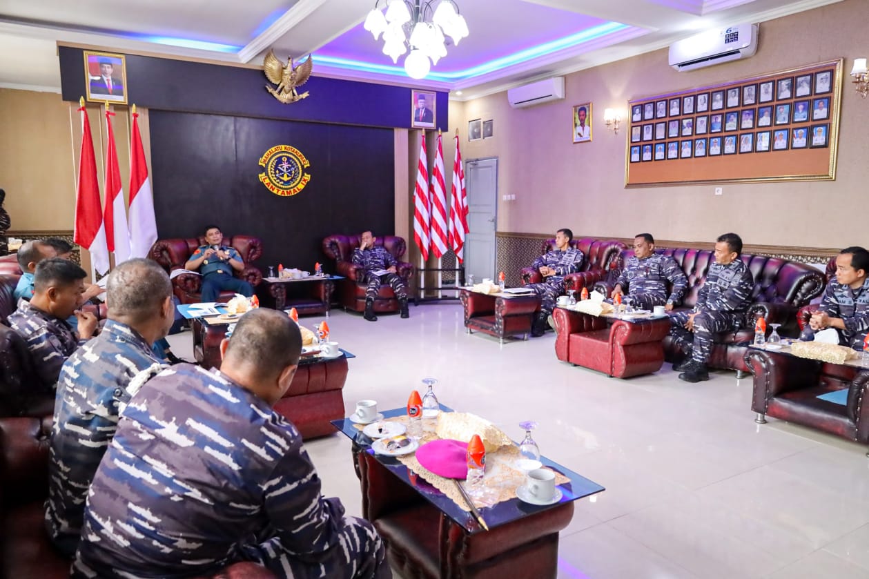 Ambon.Kabarsulsel.Indonesia.Com.Danlantamal IX diwakili Asisten Operasi Danlantamal IX (Asops) terima Kunjungan Kerja Tim Pengawasan dan Evaluasi (Wasev) Ban IV Sopsal bertempat di Mako Lantamal IX, Baguala, Kota Ambon pada Kamis. (22/08/24)