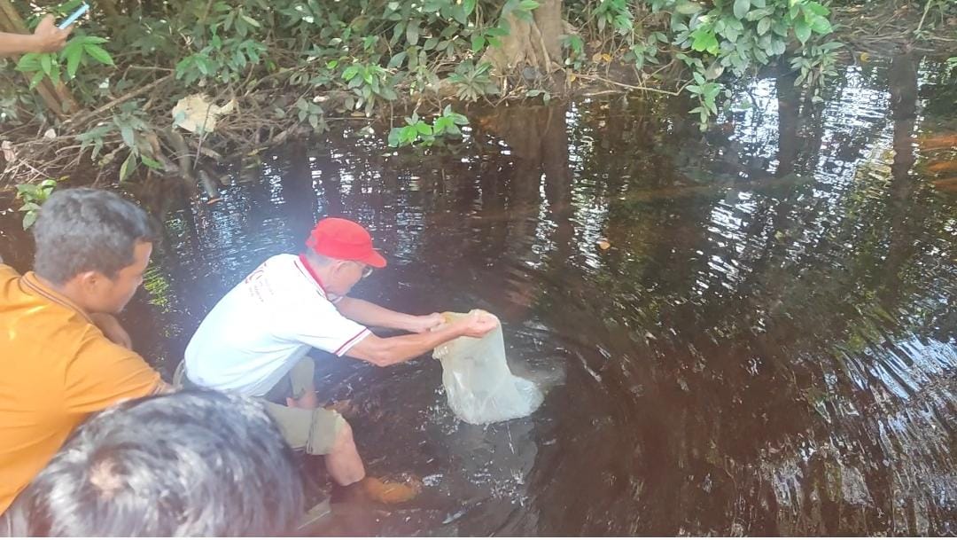 Salah satu langkah nyata yang dilakukan adalah penebaran ribuan ekor benih ikan nila di tiga titik aliran sungai di Desa Kualan Hilir, Kecamatan Simpang Hulu, Kabupaten Ketapang, Kalimantan Barat.
