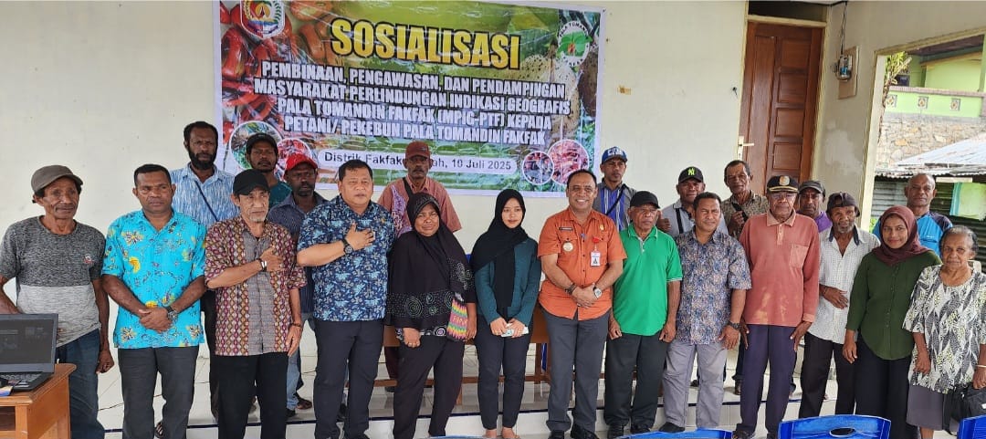 Asosiasi Masyarakat Perlindungan Indikasi Geografis Pala Tomandin Fakfak (MPIG-PTF) memulai rangkaian sosialisasi di tingkat distrik untuk memperkuat pembinaan, pengawasan, dan pendampingan petani serta pelaku usaha pengepul. Agenda ini menjadi bagian dari strategi menjaga kualitas dan reputasi Pala Tomandin sebagai komoditas unggulan khas Fakfak yang telah bersertifikat Indikasi Geografis.