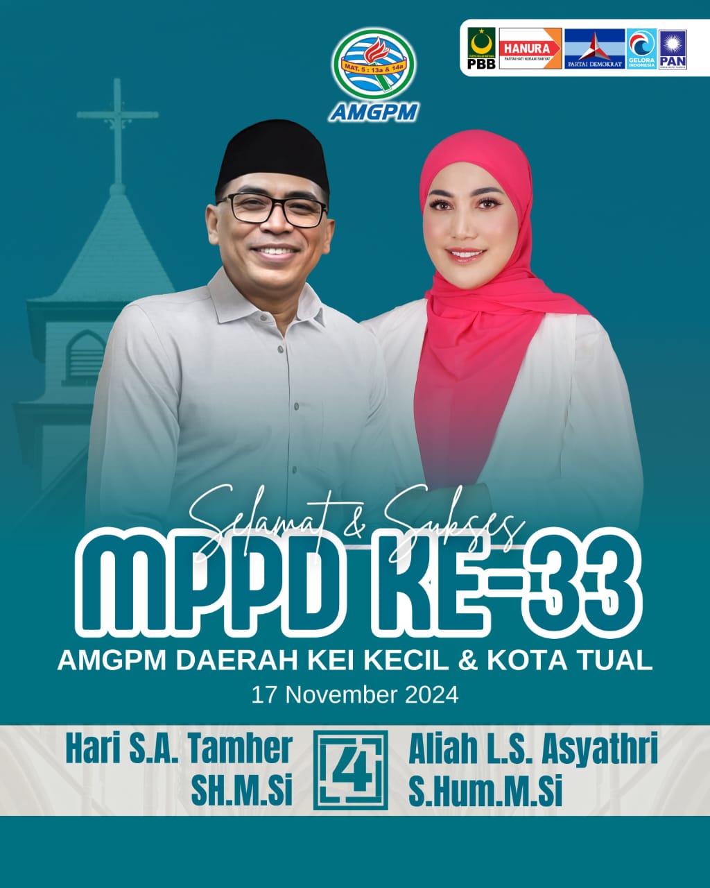 “Kami mengucapkan selamat dan sukses atas pelaksanaan MPPD ke-33 AMGPM Wilayah Kei Kecil dan Kota Tual. Semoga acara ini menghasilkan keputusan-keputusan yang relevan dan visioner, serta memperkuat pelayanan pemuda gereja untuk menjawab tantangan zaman,” ungkap Pasangan Calon Wali Kota dan Wakil Wali Kota Tual tersebut.