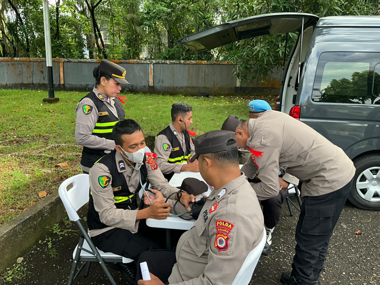 Tim kesehatan Bid Dokkes Polda Maluku melakukan sejumlah pemeriksaan dasar kepada personel, di antaranya pengecekan tekanan darah, pemberian vitamin, serta layanan konsultasi kesehatan bagi anggota yang akan melaksanakan tugas pengamanan di berbagai titik operasi.