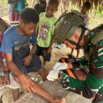 Selalu Hadir Untuk Bantu Masyarakat, Satgas Yonif 131/Brajasakti Laksanakan pengobatan Gratis di Kampung Sawiyatami Perbatasan Papua