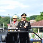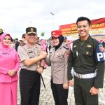Pangdam Pattimura Turut Meriahkan Peringatan Hari Bhayangkara Ke-78 Ambon.Kabarsulsel.lndonesia.com Pangdam XV/Pattimura Mayjen TNI Syafrial, PSC., M.Tr.(Han)., menghadiri Upacara Hari Bhayangkara Ke-78 yang digelar oleh Polda Maluku di Lapangan Tahapari, Kota Ambon. Senin, (1/7/2024). Acara yang dipimpin oleh Kapolda Maluku, Irjen Pol Drs. Lotharia Latif, S.H., M.Hum., bertema “Polri Presisi Mendukung Percepatan Transformasi Ekonomi yang Inklusif dan Berkelanjutan Menuju Indonesia Emas” tersebut menegaskan, komitmen Polri dalam mengamankan dan melayani masyarakat. Kegiatan ini dihadiri oleh sejumlah pejabat tinggi antara lain, Pj. Gubernur Maluku Ir. Sadali Ie, M.Si., I.P.U., Kepala Kejaksaan Tinggi Maluku Agoes Soenanto Prasetyo., S.H., M.H., Danrem 151/Binaiya, Brigjen TNI Antoninho Rangel da Silva, S.I.P., M.Han., Danlantamal IX/Ambon Brigjen TNI (Mar) Said Latuconsina, M.M., M.T., M.Tr., Kepala BNN Maluku Brigjen Pol. Deni Dharmapala, S.H., S.I.K., M.H., Kabinda Maluku Kolonel Pas R. Harys Soeryo M, Danlanud Pattimura Kolonel Pnb Jhonson Henrico Simatupang, M.Han., Kabakamla Zona Maritim Timur Laksma Agam Endrasmoro, Wakil Ketua DPRD Provinsi Maluku Melkias Serdikut dan sejumlah tokoh terkait lainnya. Total peserta dan undangan mencapai sekitar 700 orang. Susunan pasukan upacara terdiri dari, 1 SSK Personil Perwira Polda Maluku, 1 SSK Gabungan TNI Kodam XV/Pattimura dan personil Polri Polda Maluku, serta 1 SSK Gabungan personil Polda Maluku dan ASN Lingkup Polda Maluku. Acara dimulai dengan kedatangan Komandan Upacara di Lapangan, dilanjutkan dengan penghormatan kepada Inspektur Upacara, laporan dari Komandan Upacara, pemeriksaan pasukan, penghormatan terhadap Pataka Polda Maluku, mengheningkan cipta, pengucapan Tri Brata, penganugerahan tanda kehormatan, pembacaan Surat Putusan Presiden RI, penyamatan tanda kehormatan, amanat dari Kapolda Maluku, Andika Bhayangkari, doa, laporan akhir dari Komandan Upacara, penghormatan terakhir, dan penutup dengan inspektur upacara meninggalkan lapangan serta sesi foto bersama. Dalam amanatnya, Kapolda Maluku mengapresiasi kehadiran para undangan serta berterima kasih atas kolaborasi seluruh pihak dalam menjaga keamanan dan ketertiban di Provinsi Maluku. Ia juga menyampaikan komitmen untuk terus meningkatkan kinerja Polri, demi masyarakat Maluku yang aman, damai, dan sejahtera. Dalam kesempatan ini, Pangdam menyatakan sangat bangga dapat turut hadir dalam peringatan Hari Bhayangkara ke-78 di Maluku ini. “Acara ini menjadi momentum penting, untuk memperkuat solidaritas antara TNI dan Polri dalam menjaga keamanan dan ketertiban di wilayah ini“, ungkap Pangdam. Pangdam juga turut memberikan tumpeng sebagai bentuk penghargaan dalam acara tersebut. Upacara kemudian dilanjutkan dengan peninjauan Bazar UMKM dan kegiatan seremonial di Gedung Plaza Presisi Polda, menandai berakhirnya rangkaian peringatan Hari Bhayangkara ke-78. (M.N)