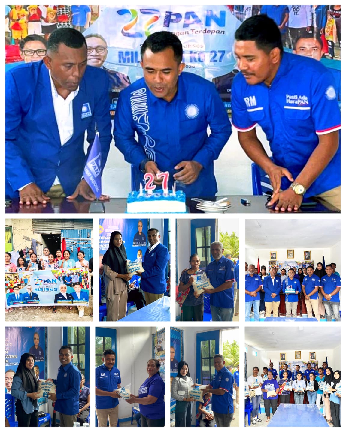 Saumlaki, Kabarsulsel-Indonesia.com | Alih-alih pesta besar dengan gemerlap panggung hiburan, Dewan Pimpinan Daerah (DPD) Partai Amanat Nasional (PAN) Kepulauan Tanimbar memilih cara sederhana namun sarat makna untuk merayakan ulang tahun partai yang ke-27.
