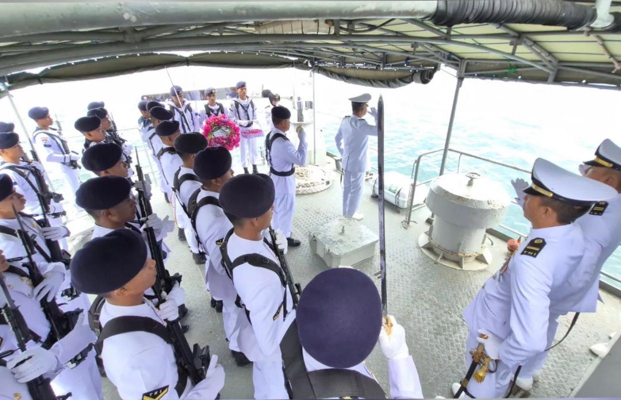 Kegiatan Upacara di pendirat dan Tabur Bunga di laut berjalan dengan khidmat mulai dari mengheningkan cipta dan penghormatan kepada arwah para Pahlawan kemudian dilanjutkan pelarungan bunga serta tabur bunga di laut oleh Inspektur Upacara.