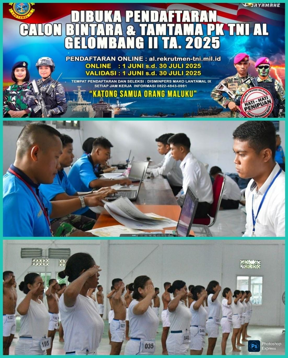 Panitia Daerah Lantamal IX Ambon Resmi Buka Pendaftaran Seleksi Prajurit TNI AL Calon Bintara Pria/Wanita dan Calon Tamtama