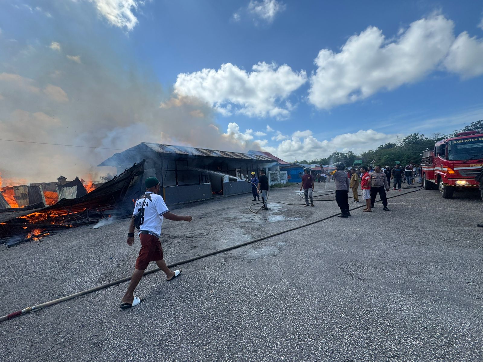 Bangunan yang hangus terbakar yaitu bekas warung nasi berisi makanan umbi-umbian dan sagu, serta bangunan tempat hiburan permainan bilyard berisi 5 meja bilyard ikut.
