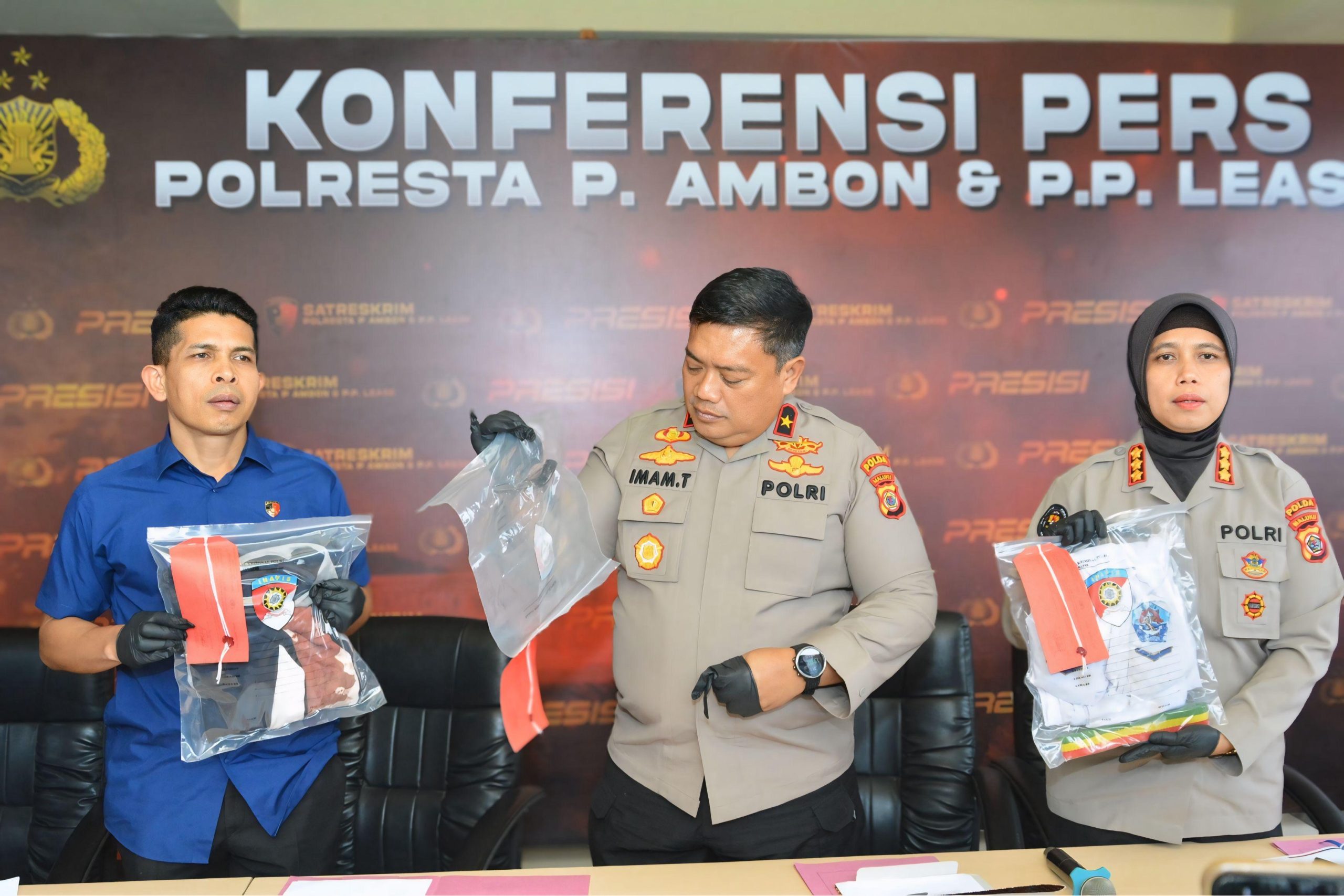 Siaran pers berlangsung di Markas Polresta P. Ambon dan Pp Lease, Kamis siang (21/8/2025). Hadir Direktur Kriminal Umum Polda Maluku, Kabid Humas Polda Maluku, Kapolresta Ambon, Wakapolresta Ambon dan Para PJU Polresta Ambon.