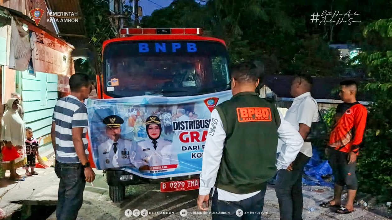 Kepala Pelaksana (Kalak) BPBD Kota Ambon, Frits Tatipikalawan, turun langsung ke lokasi bersama empat staf untuk memastikan distribusi air bersih berjalan lancar dan tepat sasaran.