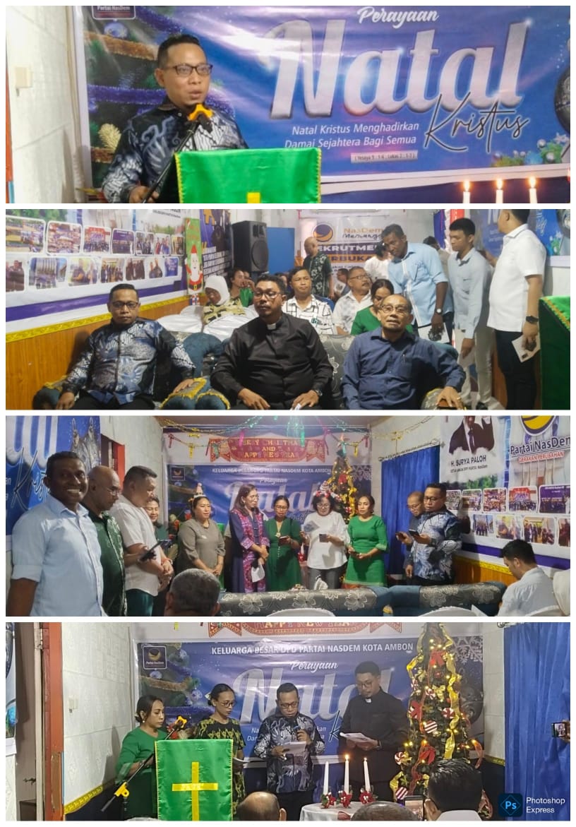 Ketua DPD Partai NasDem Kota Ambon yang juga selaku Ketua DPRD Kota Ambon, Morits Tamaela, menyampaikan pesan mendalam tentang kesatuan, pengorbanan, serta makna damai Natal bagi seluruh kader dan masyarakat.