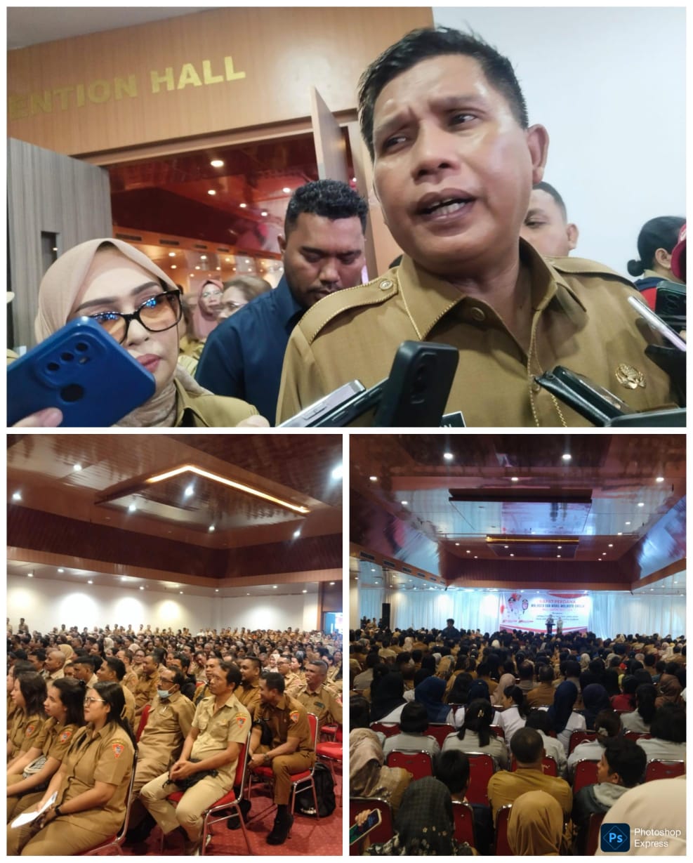 Hari ini saya bersama ibu Elly Toisutta sebagai Walikota dan Wakil Walikota Ambon memperkenalkan diri kepada seluruh jajaran ASN non ASN Pemerintah kota sekaligus kami menyampaikan apa yang menjadi keinginan dan harapan kami untuk menjawab semua janji politik yang sudah kami sampaikan kepada masyarakat, ungkap Walikota Ambon Bodewin Wattimena kepada wartawan usai Rapat Perdana Walikota dan Wakil Walikota Ambon Masa Jabatan 2025-2030 bersama ASN dan Non ASN yang bertempat di lantai 2 MCM Tantui Ambon, Selasa (4/3/2025)