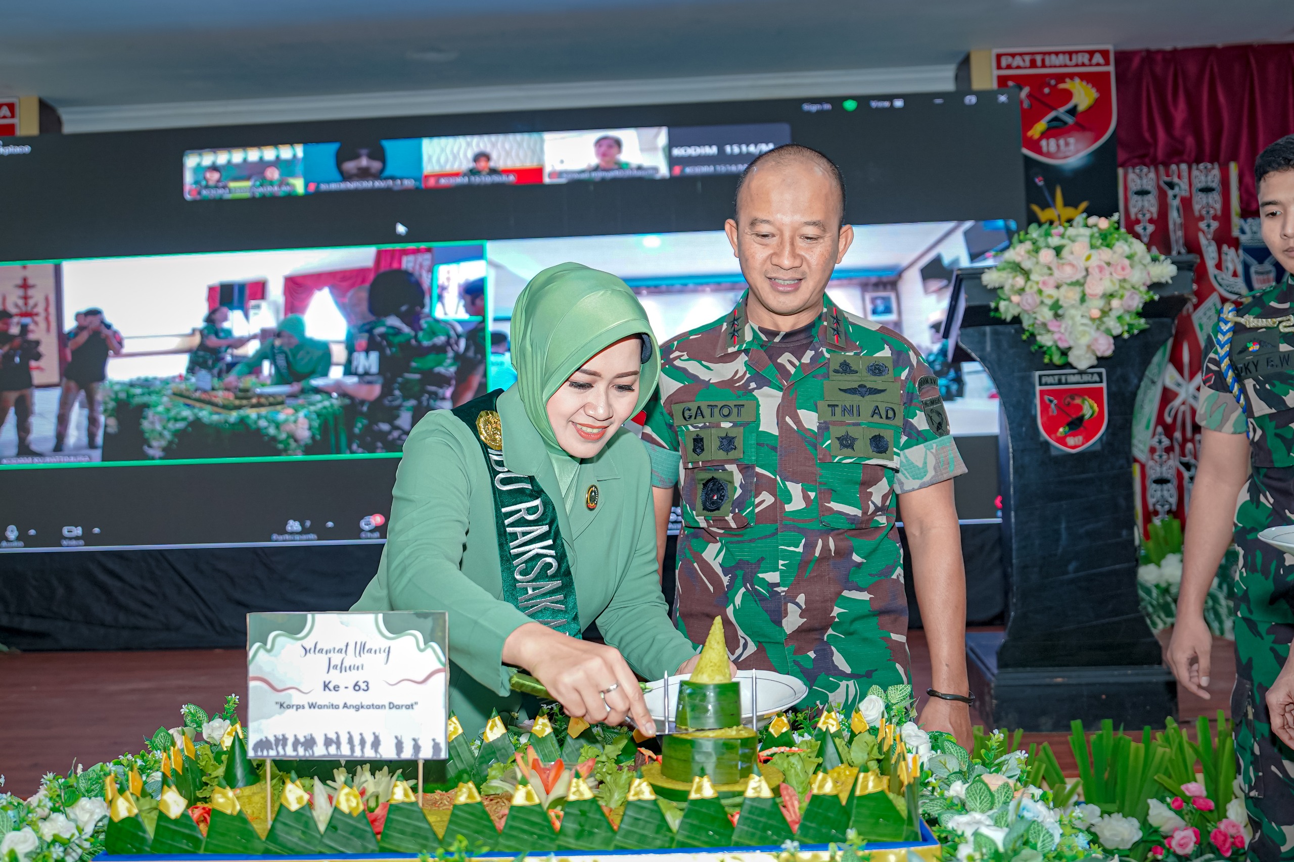 Acara dilanjutkan dengan pemotongan tumpeng dan kue ulang tahun, oleh Pangdam bersama Ibu Ketua Persit KCK Daerah XV/Pattimura, Ny. Henny Putranto Gatot selaku Ibu Raksakarini Sri Sena Kodam XV/Pattimura. Kemudian, para hadirin disuguhkan dengan persembahan tarian dari anggota Kowad Kodam XV/Pattimura.