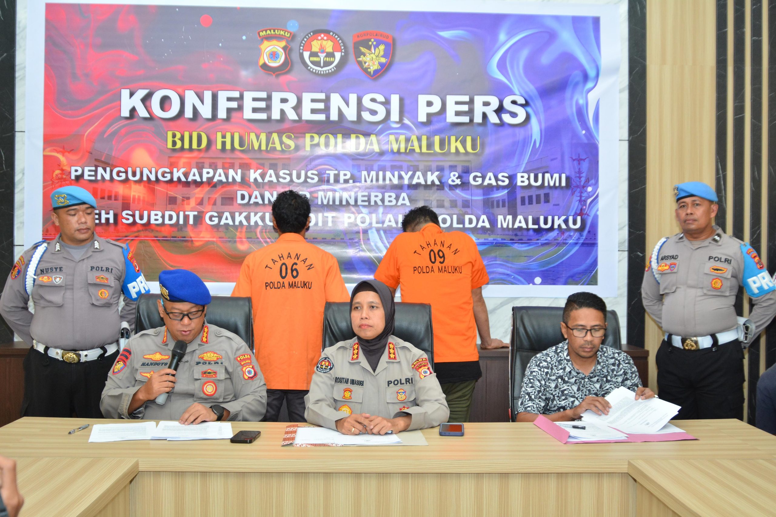 Ambon,Kabarsulsel-lndonesia.com. Kepolisian Daerah Maluku melalui Direktorat Polairud menggelar press release pengungkapan kasus Tindak Pidana (TP) Minyak dan Gas Bumi beserta Minerba, Jumat (12/9/2025).