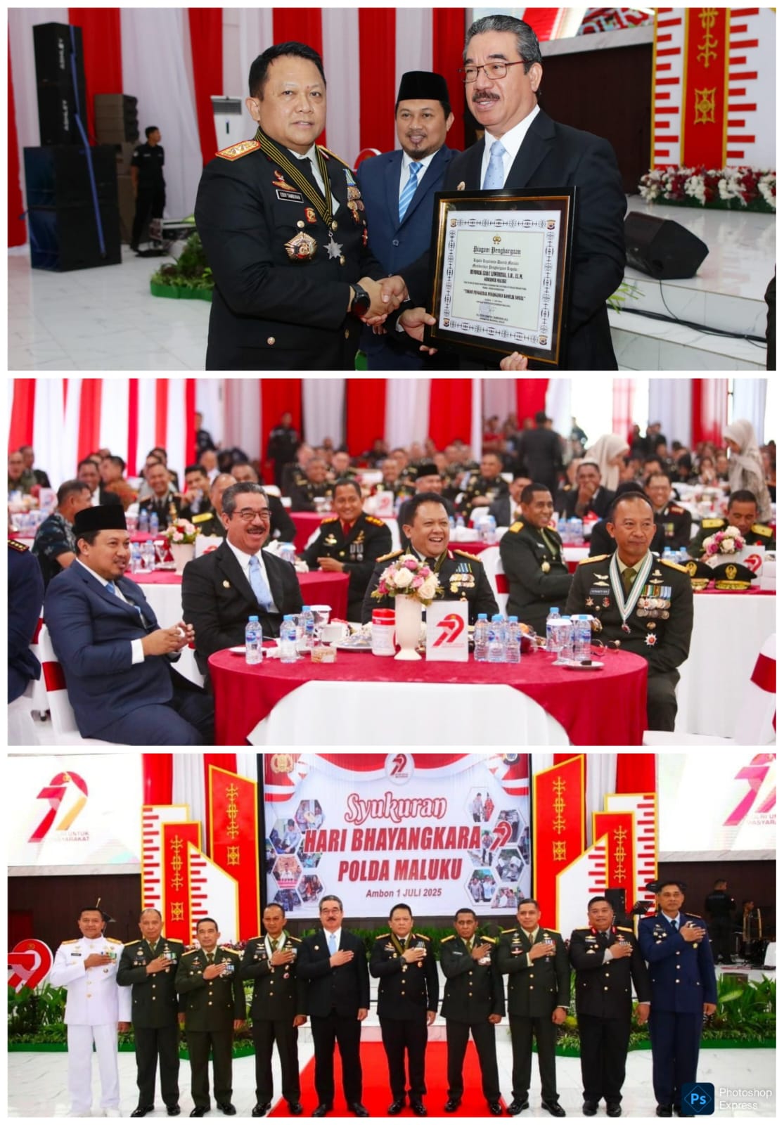 Meski sederhana, kegiatan syukuran berjalan dengan meriah. Kapolda Maluku bersama Gubernur dan Pangdam Pattimura menyerahkan piagam penghargaan kepada para personel Bhabinkamtibmas dan Security yang menjadi pemenang lomba yang digelar untuk memeriahkan hari Bhayangkara ke 79 di wilayah Maluku.