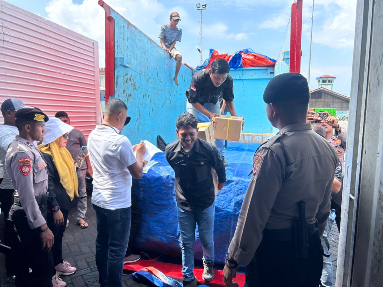 Hari ini, Rabu (3/1/2024), tim Satgas Preventif, Kamseltibcarlantas, dan Banops Operasi Mantap Brata (OMB) Salawaku Polda Maluku, melakukan pengawalan surat suara dari Pelabuhan Peti Kemas Ambon menuju ke Pulau Buru.