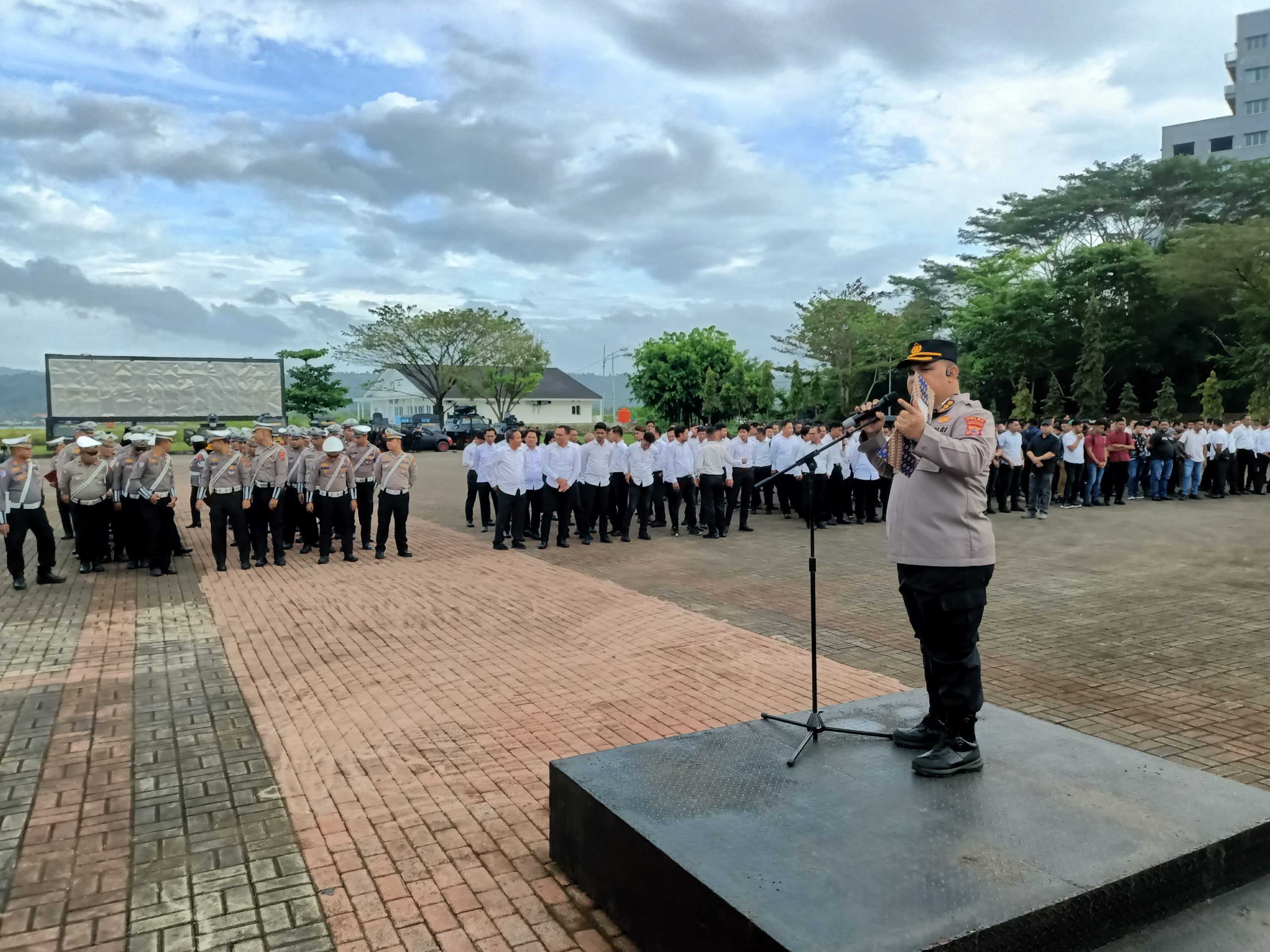 “Saya minta seluruh personel untuk mengedepankan sikap profesional, mengutamakan pelayanan dan pendekatan dialogis. Tugas kita adalah menjaga situasi tetap kondusif, serta melindungi semua pihak baik peserta aksi maupun masyarakat umum,” tegas Kapolda dalam apel kesiapan pengamanan pagi tadi.