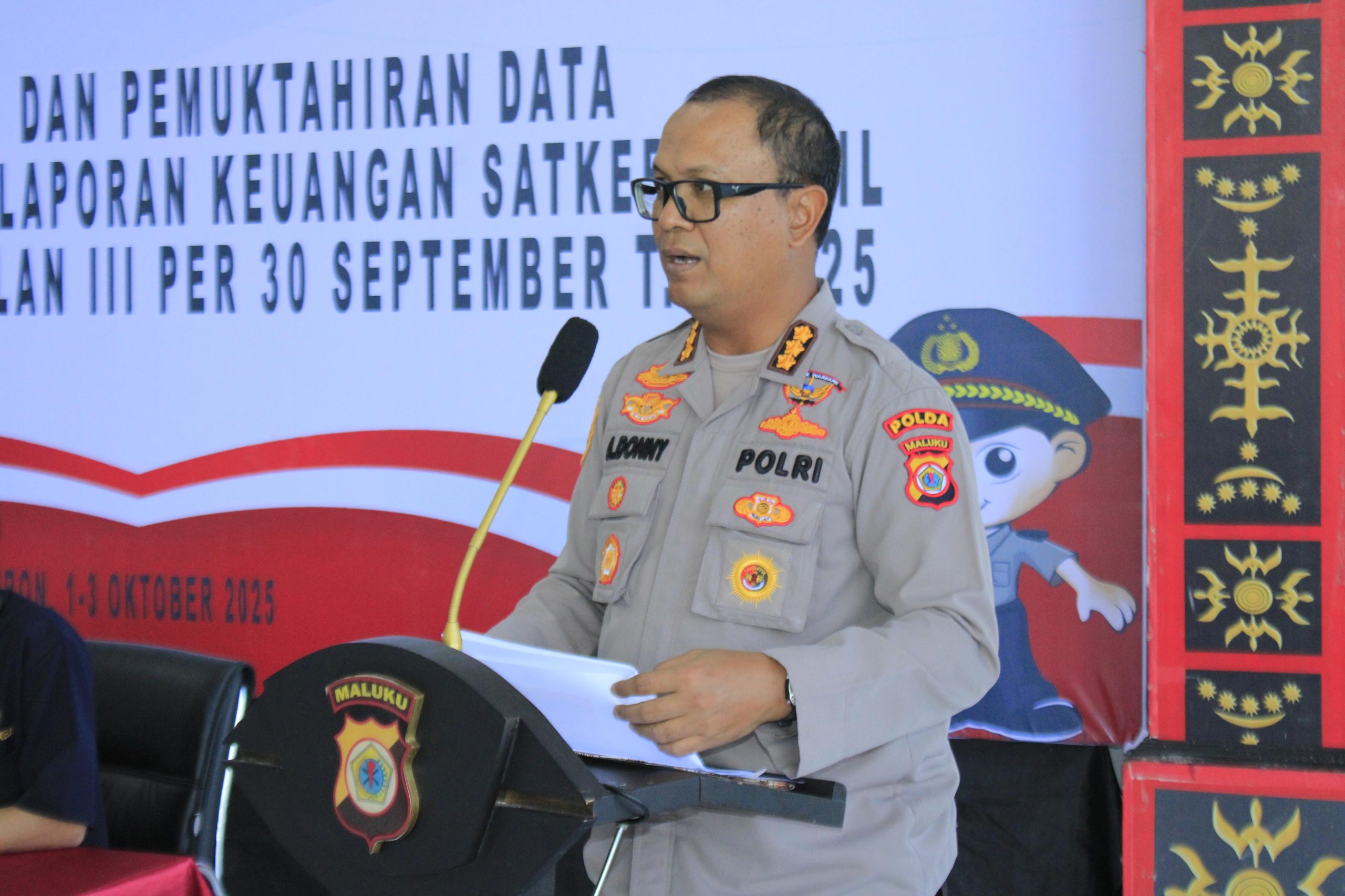 Demikian disampaikan Karo Logistik Polda Maluku Kombes Pol. Donny Setiawan saat membuka kegiatan Rekonsiliasi dan Pemuktahiran Data Barang Milik Negara (BMN) serta Penyusunan Laporan Keuangan Satuan Kerja (Satker) dan Satuan Kewilayahan (Satwil) Triwulan III 2025 yang berakhir 30 September 2025.
