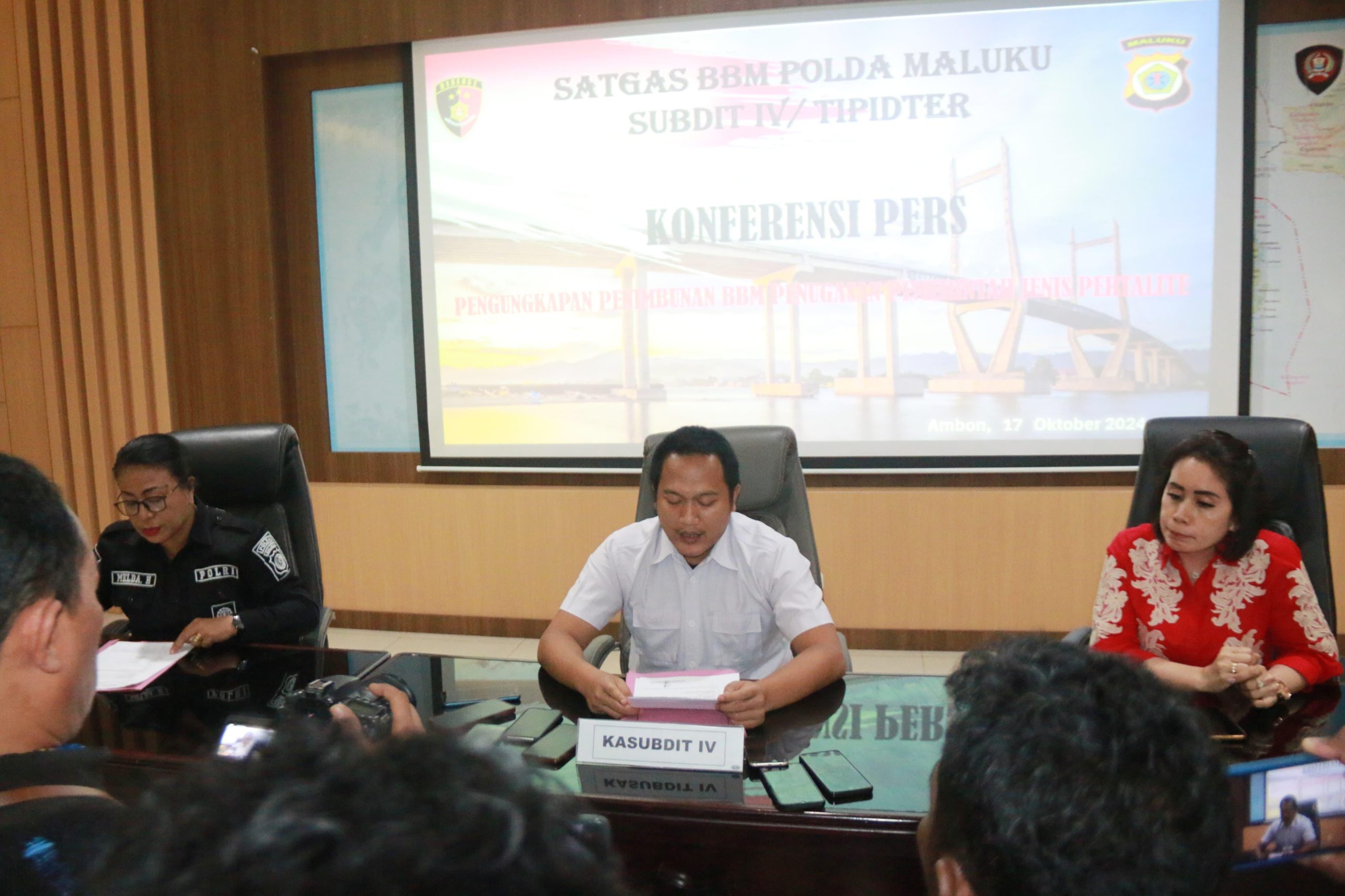 PS Kasubdit IV Tipidter, AKP. M. Eko Hasbi Purwono, S.I.K., M.H, yang didampingi PS Kaur Penum Subbid Penmas Bid Humas Polda Maluku, AKP. Imelda Haurissa, dan IPTU Heni Papilaya, Panit 1 Subdit IV Ditreskrimsus Polda Maluku, saat konferensi pers mengatakan, kasus penimbunan BBM terungkap setelah pihaknya melakukan penyelidikan berdasarkan informasi dari masyarakat.