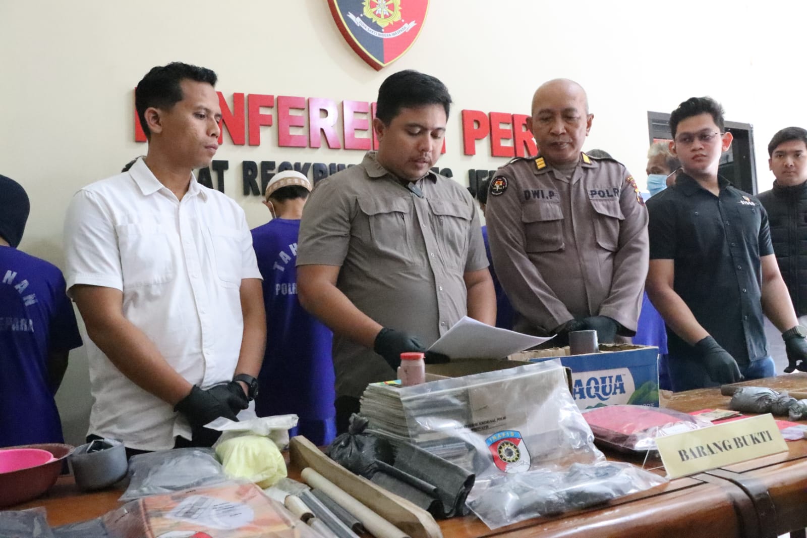 Polisi berhasil menyita ± 700 gram serbuk bahan peledak siap edar dan ± 3 kilogram serbuk bahan peledak belum jadi dari tangan pelaku.
