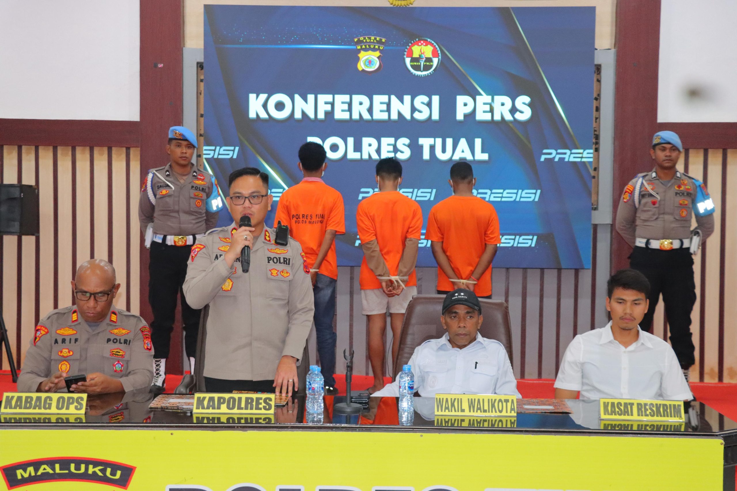 Dalam konferensi pers yang digelar di Aula Jananuraga, Polres Tual, Rabu (24/9), Kapolres Tual AKBP Adrian S. Y. Tuuk, S.I.K secara resmi mengumumkan penetapan tiga tersangka tambahan berinisial AFK, MR, dan FO, yang diduga terlibat secara aktif dalam membantu pelaku utama, WR, melarikan diri usai kejadian.