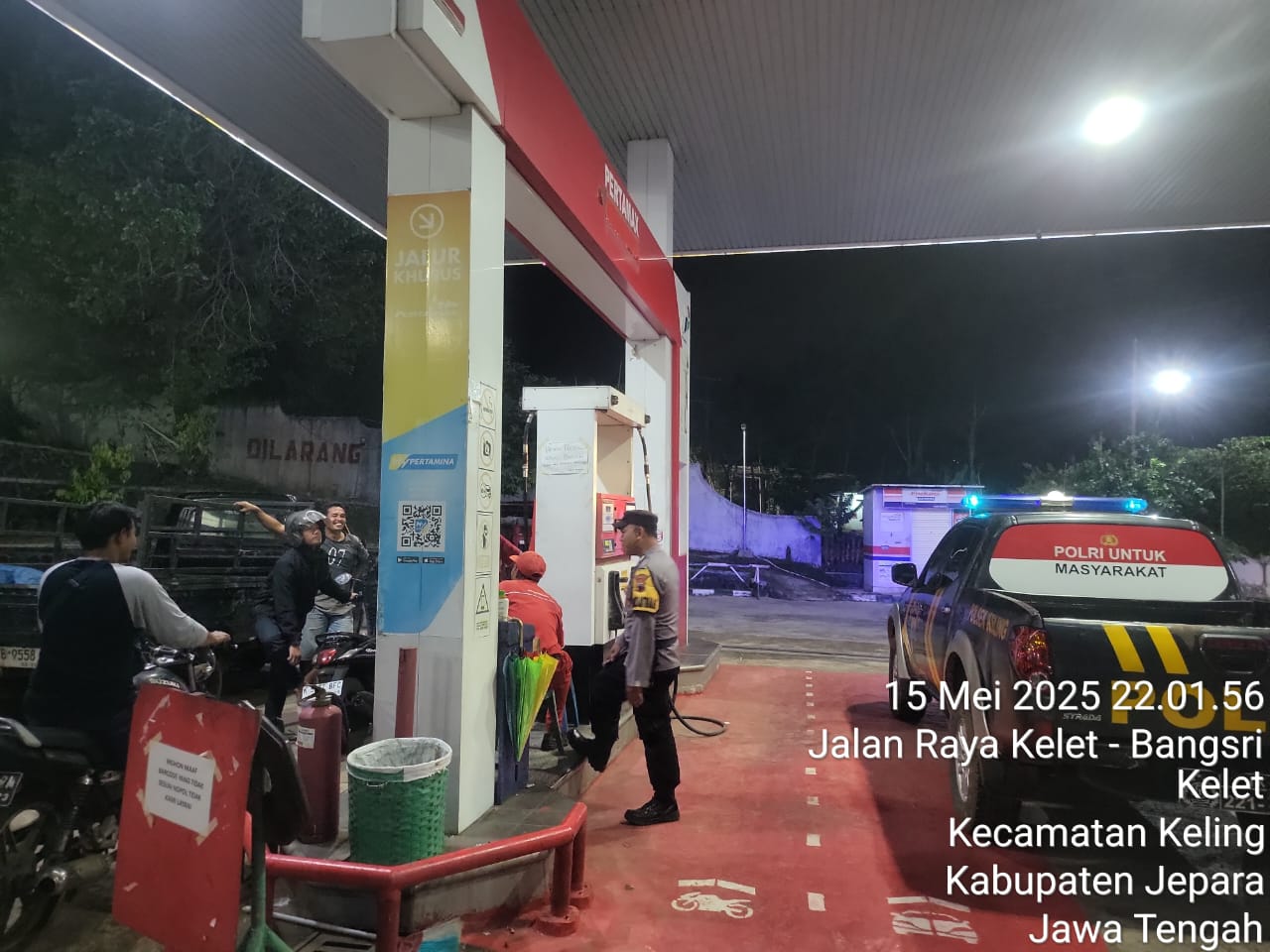 Jepara, Kabarsulsel-Indonesia.com | Kepolisian Resor (Polres) Jepara, Polda Jawa Tengah, melalui Polsek Keling, melaksanakan patroli ke sejumlah titik keramaian yang berpotensi menjadi lokasi aksi plremanisme, yang dipimpin oleh piket Bintara Pengawas (Bawas) Aiptu Purnomo beserta personel Polsek Keling, pada Kamis (15/5/2025) malam.