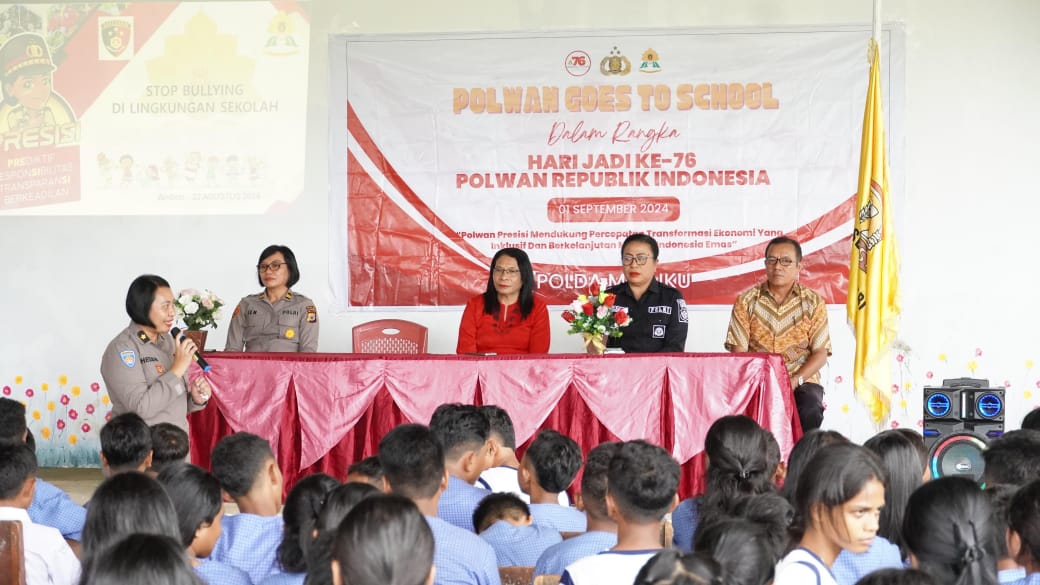 Ambon.Kabarsulsel.lndonesia.com.Kepolisian Wanita Polda Maluku terus menggelar program goes to school yang merupakan rangkaian kegiatan menyambut Hari Ulang Tahun (HUT) ke-76.