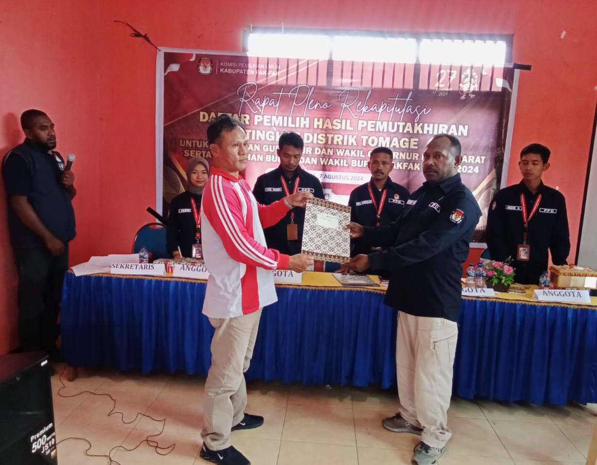 Fakfak-Tomage, Kabarsulsel-Indonesia.com | 07 Agustus 2024 – Dalam rangka persiapan Pemilihan Kepala Daerah (Pilkada) 2024, Panitia Pemilihan Distrik (PPD) Tomage menggelar rapat pleno yang berlangsung pada hari ini di Aulah Kantor Distrik Tomage. Rapat tersebut dimulai tepat pada pukul 10:35 WIT dan berakhir pada pukul 13:34 WIT.
