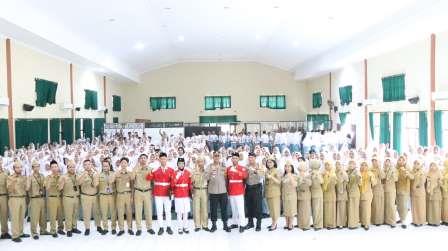 Sosialisasi dan operasi knalpot brong dipimpin oleh Kapolres Jepara AKBP Wahyu Nugroho Setyawan bersama jajarannya yang didampingi pihak sekolah.