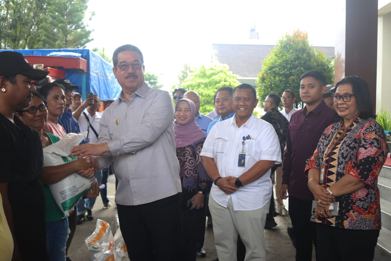 Seremoni acara Penyaluran Cadangan Pangan Pemerintah untuk Bantuan Pangan Beras ke Masyarakat dilaksanakan di Depan Kantor Gubernur dan dipimpin langsung oleh Gubernur Maluku Hendrik Lewerissa, Jumat (18/7/2025).
