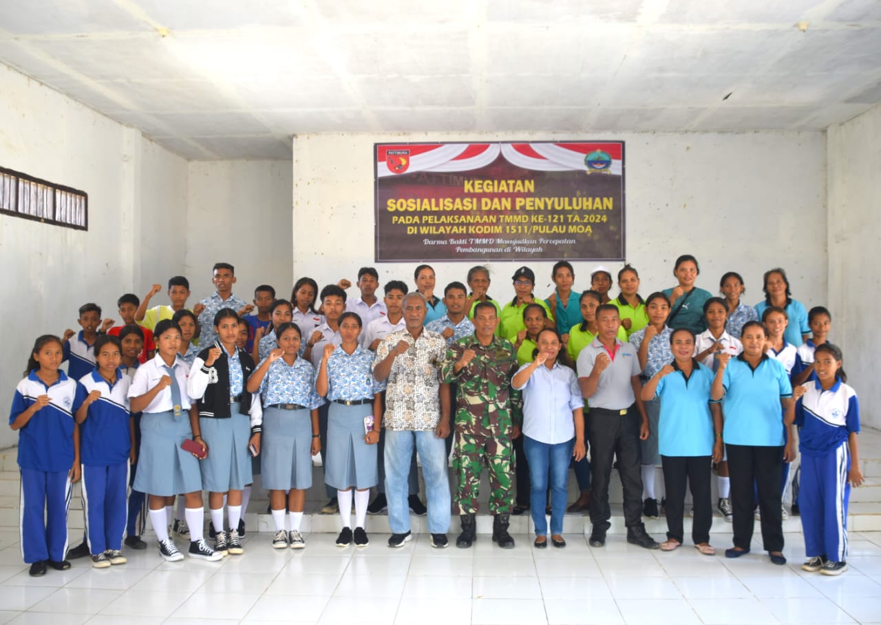 Dansatgas TMMD ke-121 TA. 2024 Kodim 1511/Pulau Moa yang diwakili Pasi Ter Kpt Inf R. Totomutu, menyampaikan, melalui Sosialisasi Pencegahan dan Penanganan Stunting ini merupakan wujud kepedulian TNI terhadap kesehatan masyarakat, melalui Satgas TMMD.