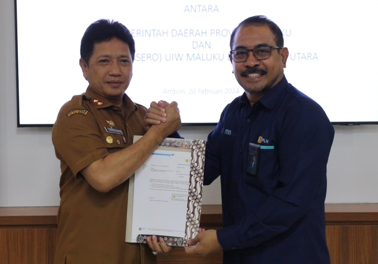 Ambon, Kabarsulsel-Indonesia.com; Sekretaris Daerah (Sekda) Maluku, Ir. Sadali Ie., M.Si., I.P.U., bersama General Manager PT. PLN Unit Induk Wilayah Maluku & Maluku Utara, Awat Tuhuloula, melaksanakan serah terima aset dokumen hibah barang milik daerah (aset) yang berasal dari dana Dekonsentrasi Sekretariat Jenderal Kementerian Energi dan Sumber Daya Mineral, pada Selasa (20/02/2024).
