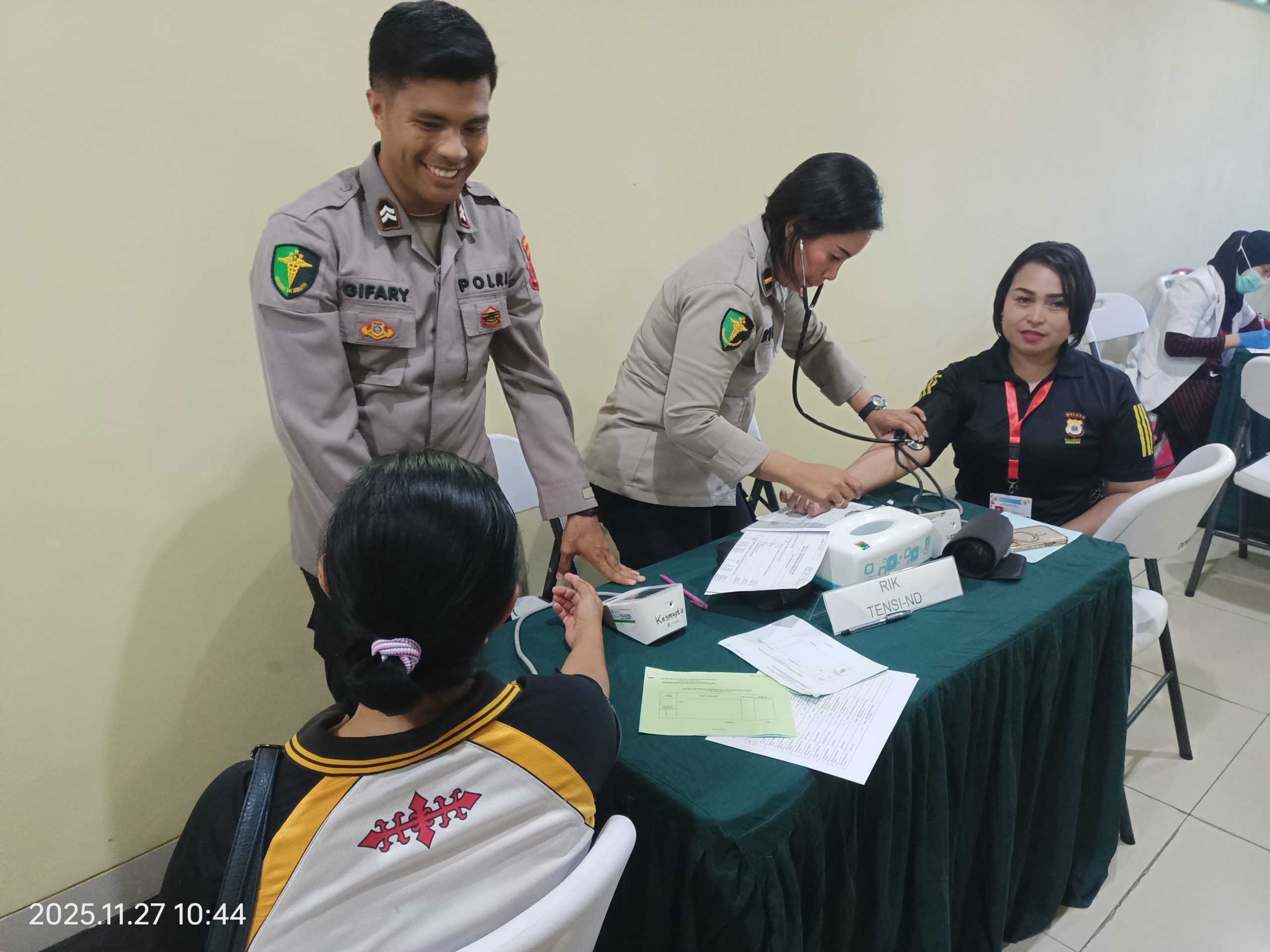 Pemeriksaan kesehatan yang dilaksanakan menyeluruh kepada 29 peserta, 3 diantaranya anggota Polwan ini dilakukan oleh tenaga kesehatan dari Bid Dokkes Polda Maluku.