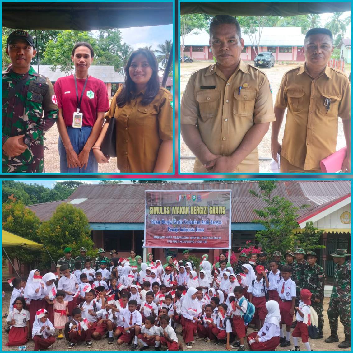 Maluku Tenggara, Kabarsulsel-Indonesia.com | Yonif 735/Nawasena bekerja sama dengan Bank BRI, Dinas Pendidikan, dan Dinas Kesehatan Kabupaten Maluku Tenggara menggelar simulasi program makan bergizi gratis di SD Negeri Ibra.