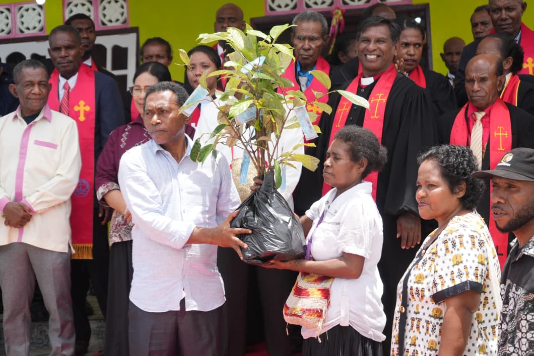 Peresmian GKI Hosana Kriawaswas dan penyaluran bibit pala Tomandin menjadi simbol kuat sinergi antara pembangunan spiritual dan ekonomi.