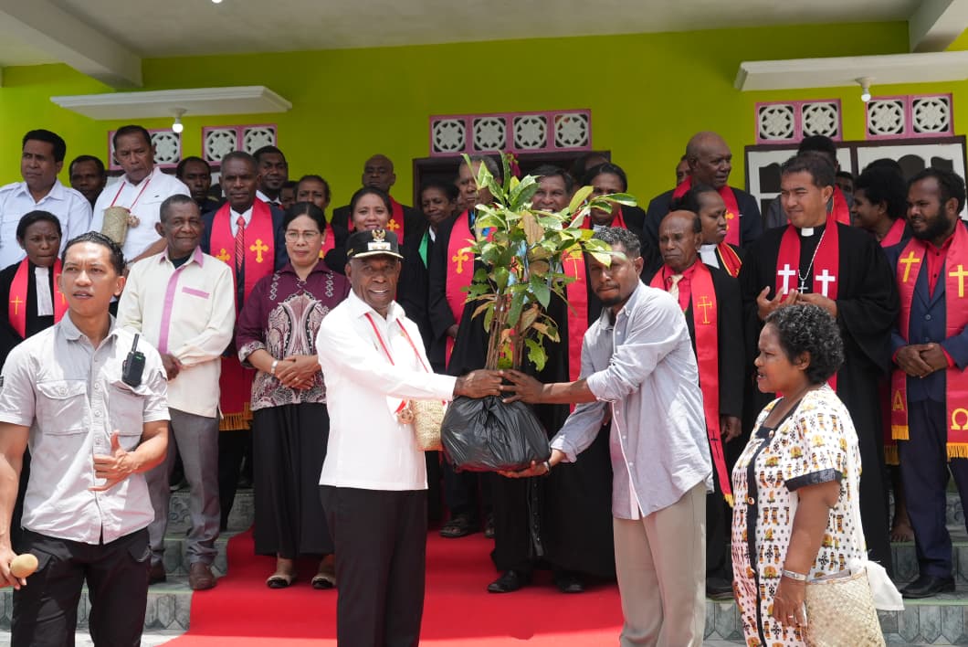 Peresmian GKI Hosana Kriawaswas dan penyaluran bibit pala Tomandin menjadi simbol kuat sinergi antara pembangunan spiritual dan ekonomi.