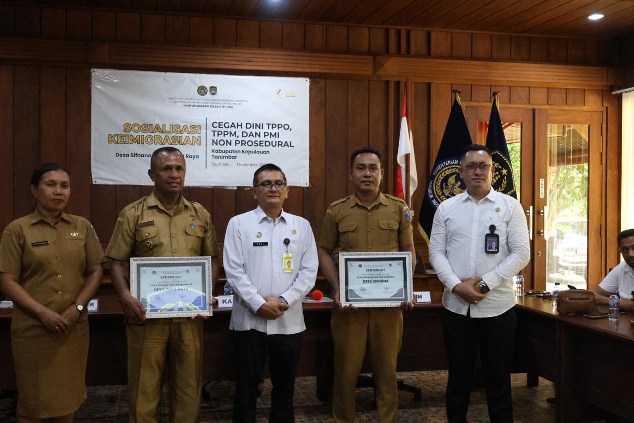 Sebagai bentuk penghargaan, Kantor Imigrasi menyerahkan sertifikat apresiasi kepada Desa Olilit Raya dan Desa Sifnana. Sertifikat tersebut diberikan atas peran aktif kedua desa dalam mendukung pelaksanaan tugas keimigrasian, terutama dalam bidang pencegahan dan koordinasi di tingkat lokal. Penyerahan dilakukan oleh Kakanwil Ditjen Imigrasi Maluku dan didampingi Kepala Seksi Teknologi Informasi dan Komunikasi Keimigrasian Imigrasi Tual.