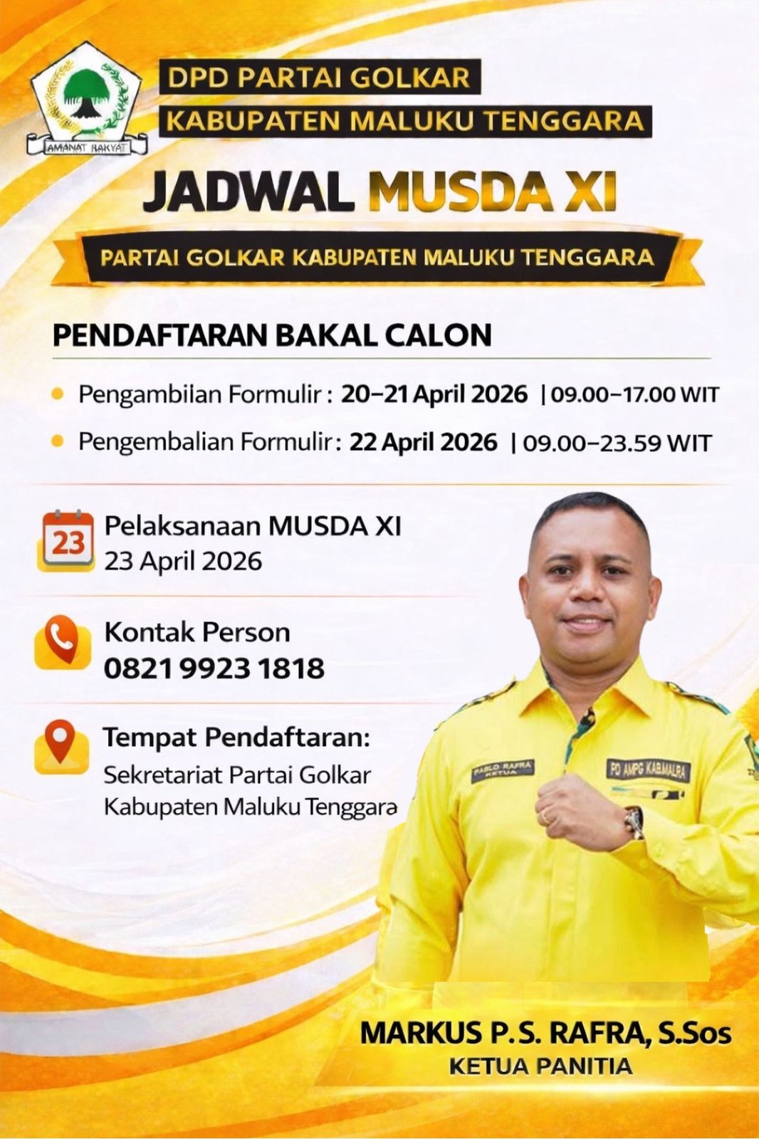 “Musda XI adalah pembuktian bahwa politik bisa dijalankan dengan sehat, elegan, dan terbuka. Kami berharap lahir pemimpin yang mampu merangkul semua golongan dan membawa harapan baru bagi masa depan Maluku Tenggara,” tutupnya.