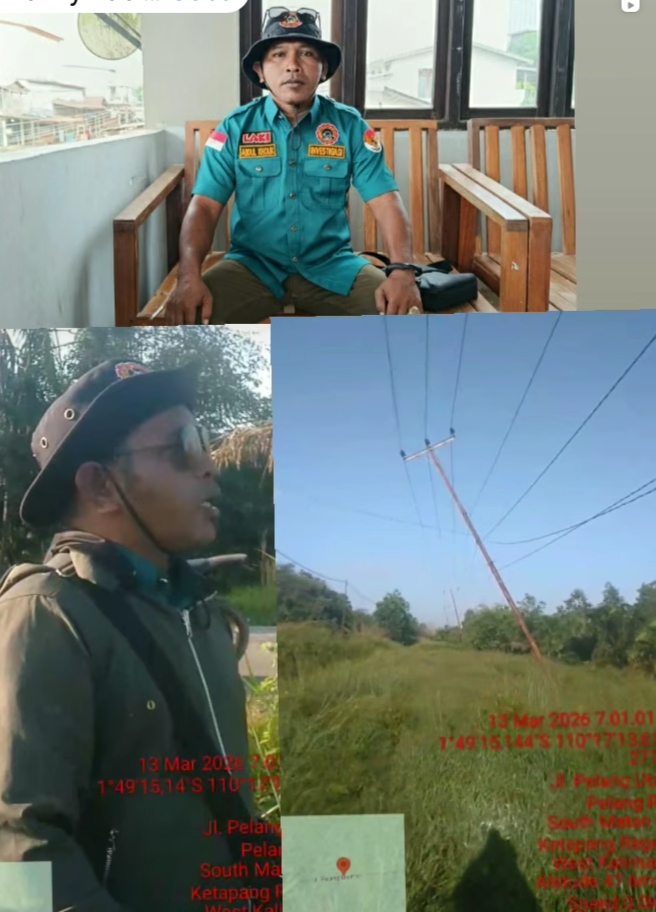 Ketapang, Kabar Sulsel Indonesia.com –Warga desa Pelang dusun indotani kecamatan MHS Kabupaten Ketapang dihebohkan oleh kondisi beberapa tiang listrik milik PT. PLN Persero BUMN Badan Usaha Milik Negara yang miring dan rawan roboh di kawasan Jalan kabupaten provinsi Kalimantan, Barat sekitar dua puluh enam kg, dari desa Pelang dusun indotani kilometer 26 jumat (13/03/2026). kondisi ini membahayakan keselamatan karna berkapasitas yang cukup tinggi, hinga warga serta pengguna jalan yang melintas di area tersebut.