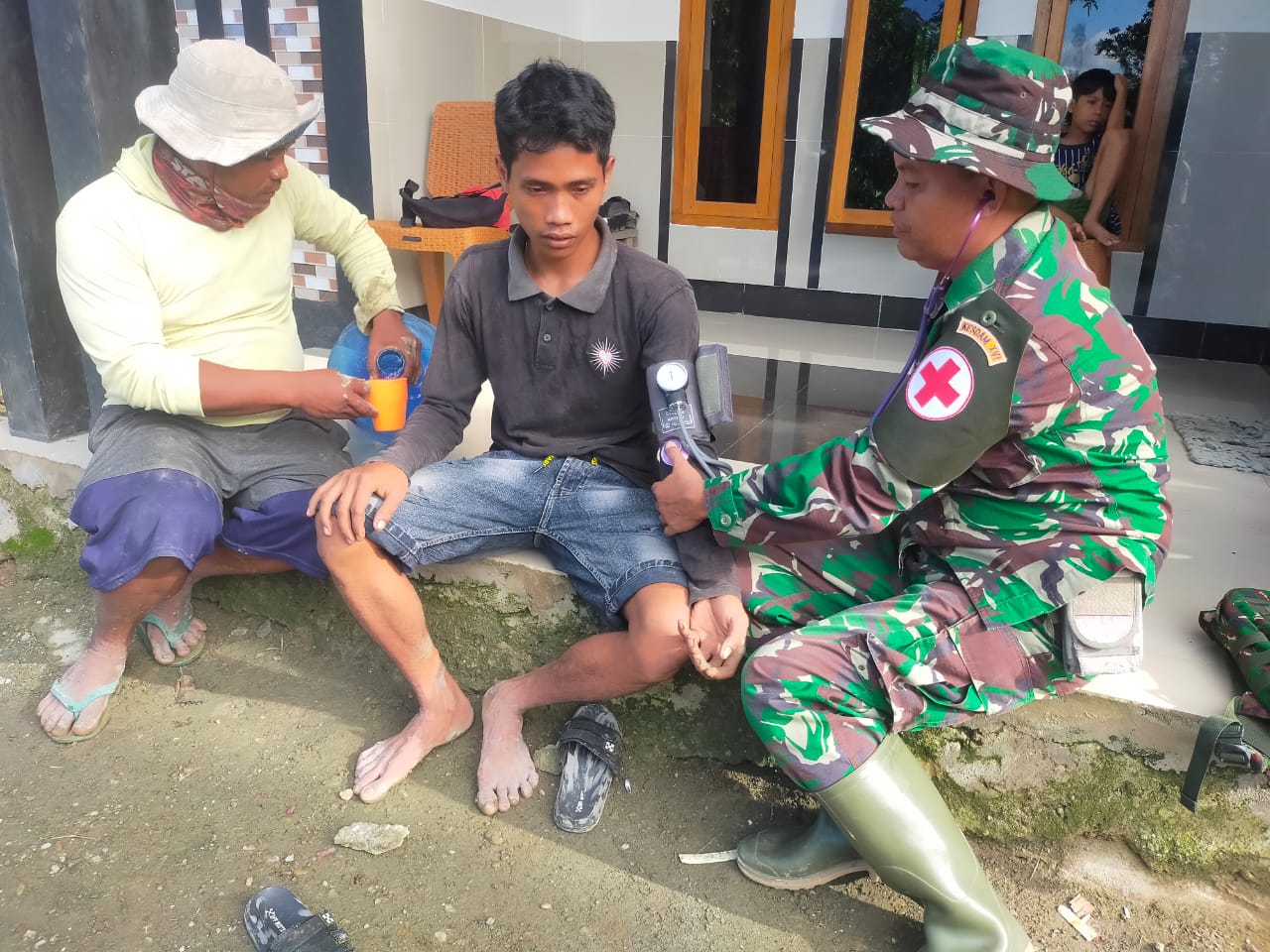 Selain Serda Jasman, tim kesehatan lainnya adalah Sertu Dani dan Serda Johan. Mereka memeriksa secara intensif satu persatu kondisi tukang. Hal ini dilakukan untuk memastikan tim tukang dalam kondisi sehat. Sehingga dapat mengerjakan sasaran fisik secara lancar, aman dan maksimal.