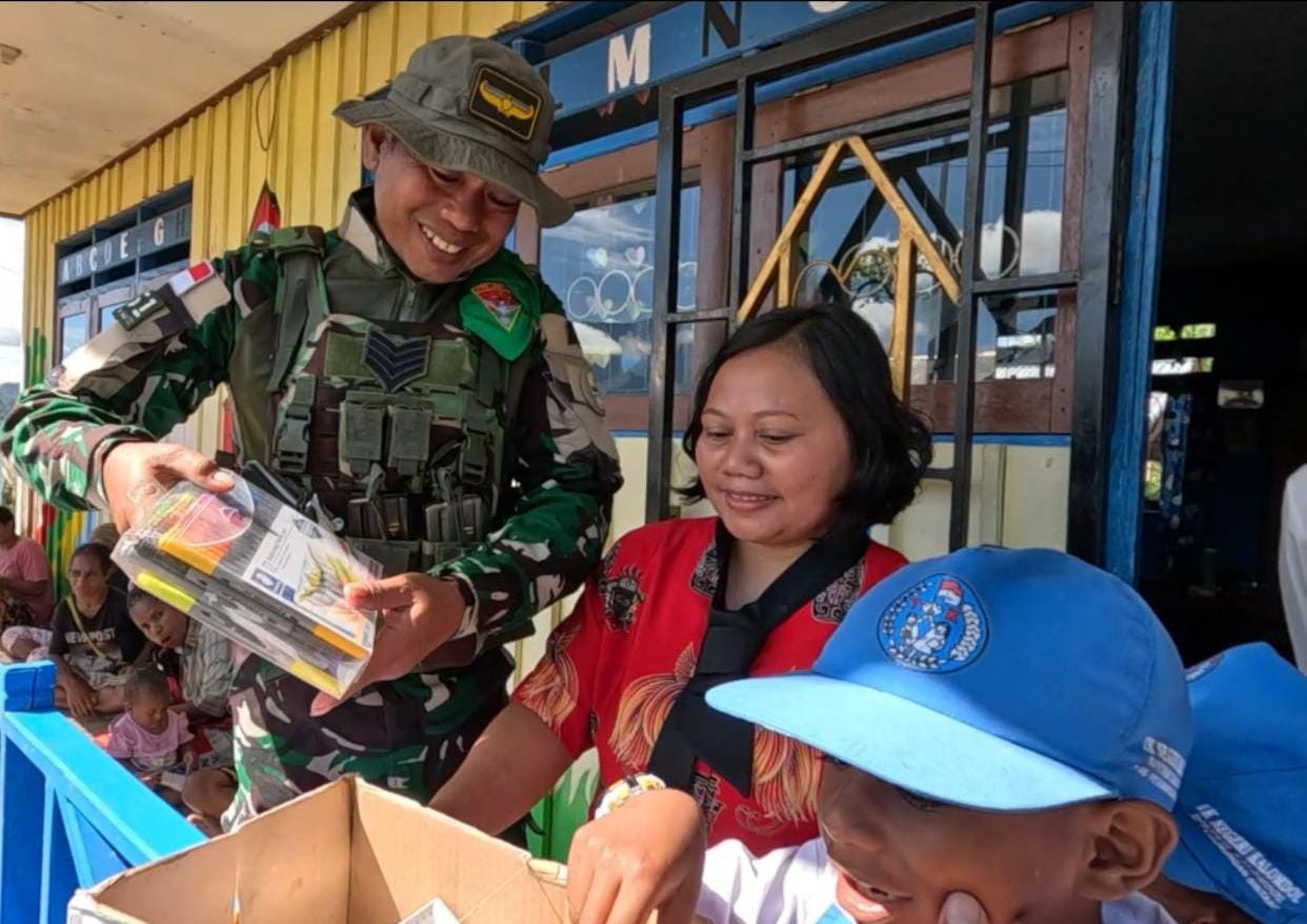 TNI Peduli Pendidikan Anak Usia Dini: Pos Oksibil Beri Alat Tulis ke PAUD