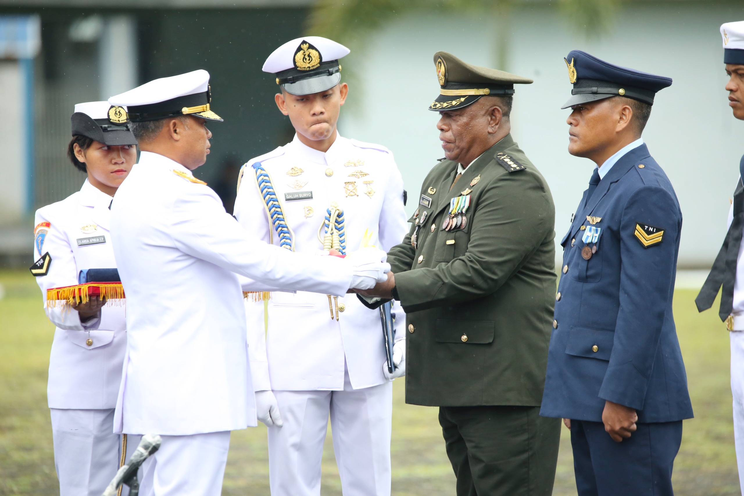 Bertindak selaku Inspektur Upacara adalah Wadan Kodaeral IX Laksamana Pertama TNI Dr. Muhammad Risahdi M.Si., (Han)., M.Tr. Opsla dan Letkol Laut (PM) Sudrajat Mukti Nugroho S.H., M.H., selaku Komandan Upacara tersebut berjalan dengan khidmat dibawah gerimis hujan yang membasahi Mako Kodaeral IX.