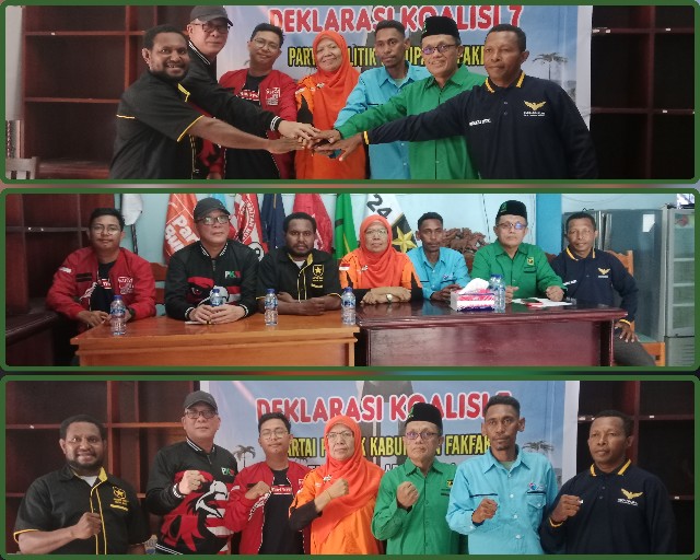 Pada hari ini kami Koalisi 7 Tujuh Partal Politik Non Seat Kabupaten Fakfak yang Terdiri Dari PARTAI BURUH, PARTAI GELORA, PARTAI KEBANGKITAN NUSANTARA, PARTAI GARUDA, PARTAI SOLIDARITAS INDONESIA (PSI) PARTAI PERSATUAN PEMBANGUNAN (PPP) DAN PARTAI UMMAT