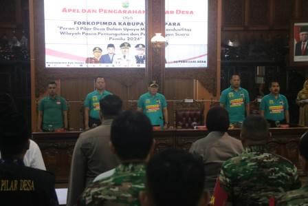 Apresiasi tersebut disampaikan jajaran Forkopimda kepada tiga pilar desa–Bhabinkamtibmas, Babinsa, dan lurah atau petinggi–di semua wilayah. Itu dalam apel pengarahan di Pendopo Kartini Jepara, Jumat (23/2/2024).