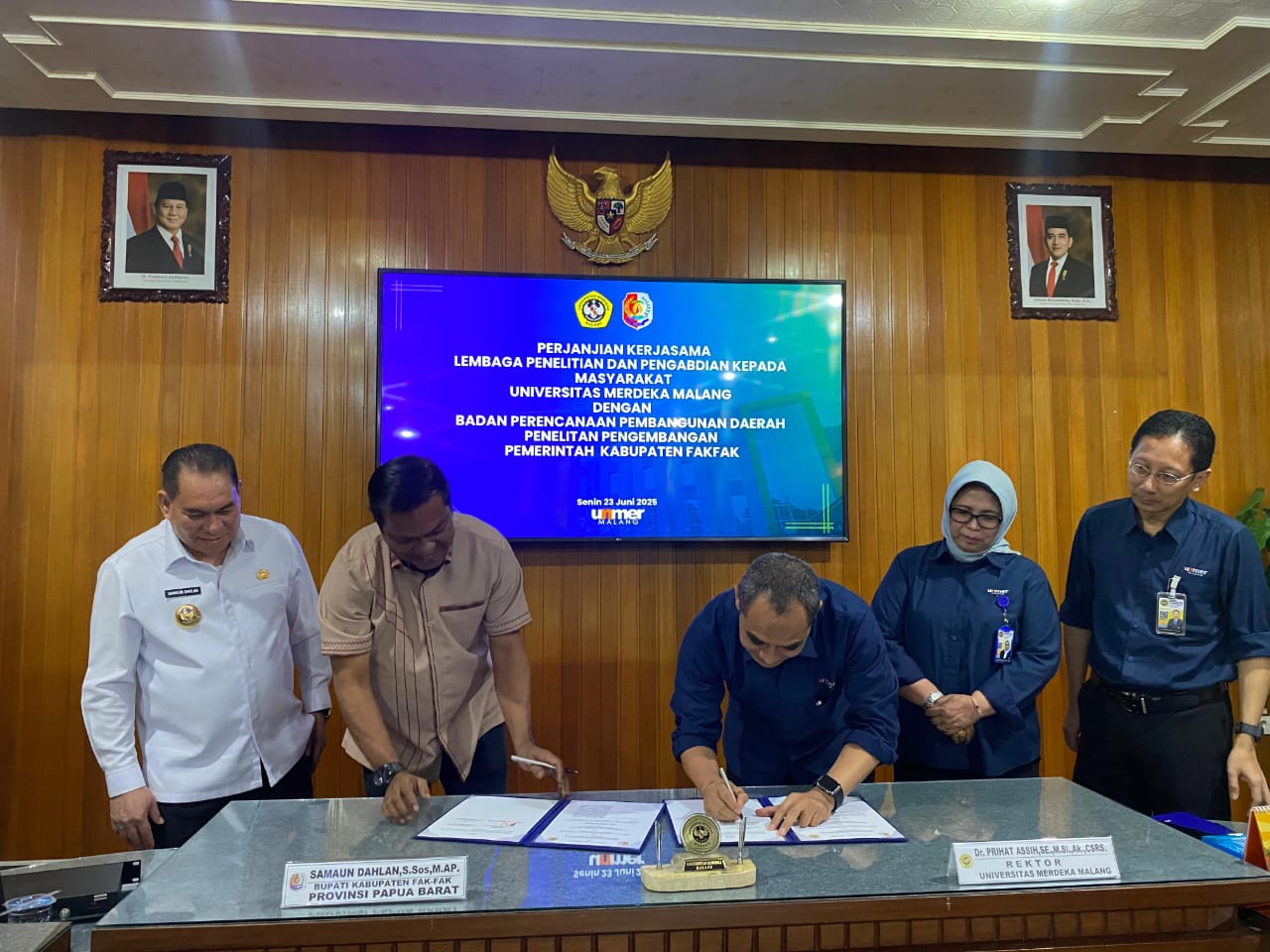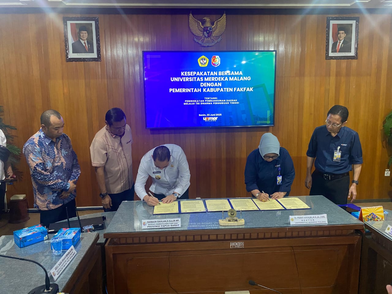 Penandatanganan dokumen kerja sama ini dilakukan oleh Rektor Unmer Malang, Dr. Prihat Assih, S.E., M.Si., Ak., CSRS, dan Bupati Fakfak, Samaun Dahlan, S.Sos., M.AP. Kedua belah pihak sepakat bahwa penguatan Tri Dharma Perguruan Tinggi menjadi fondasi utama dalam mendorong akselerasi pembangunan di ujung barat daya Papua Barat.